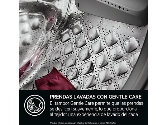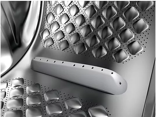 Tambor Care El diseño curvo de su tambor y su paleta optimizada permiten que tus prendas más delicadas se deslicen suavemente en el interior de la lavadora protegiendo los tejidos suavemente gracias a una fina película de agua que cubre los orificios del tambor.