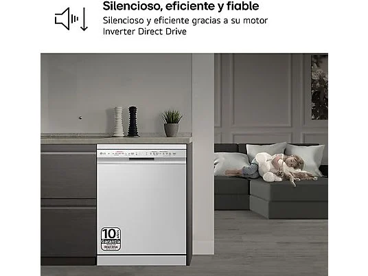 Con el lavavajillas LG DF243FWS tendrás tu platos brillantes y sin marcas de agua gracias al poder del vapor.